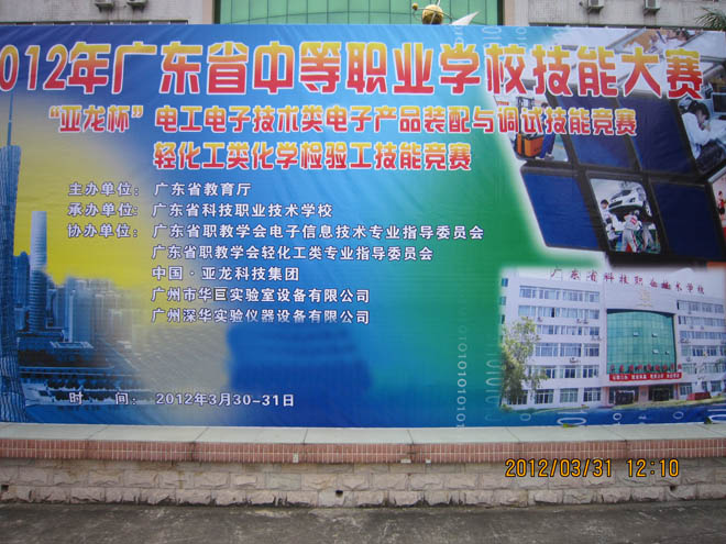 由廣東省教育廳主辦,廣州市深華實(shí)驗(yàn)儀器設(shè)備有限公司、廣州華巨實(shí)驗(yàn)設(shè)備公司協(xié)辦,廣東科技職業(yè)技術(shù)學(xué)校承辦的2012年廣東省中等職業(yè)技術(shù)學(xué)校技能大賽輕化工類化學(xué)檢驗(yàn)工技能競賽于2012年3月30~31日在廣東科技職業(yè)技術(shù)學(xué)校成功舉行。