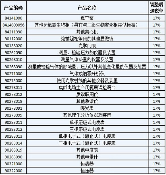 經(jīng)國務院批準,近日,財政部發(fā)布關(guān)于提高機電、成品油等產(chǎn)品出口退稅率的通知,其中包括了真空泵、質(zhì)譜聯(lián)用儀等實驗室設(shè)備。本次通知提到,將一系列產(chǎn)品的增值稅出口退稅率提高至17%,該通知自2016年11月1日起執(zhí)行。